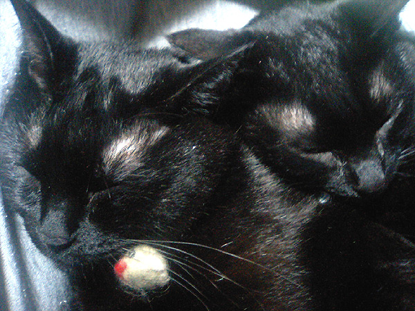 二匹とも真っ黒っすからねぇ、引っ付いて見える時もありますねぇ。 |